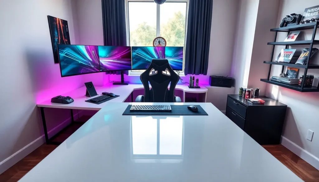 When it comes to crafting the ultimate gaming oasis, an L shaped desk is a game-changer. Imagine your gaming setup sprawling across a vast horizon, providing ample space for your